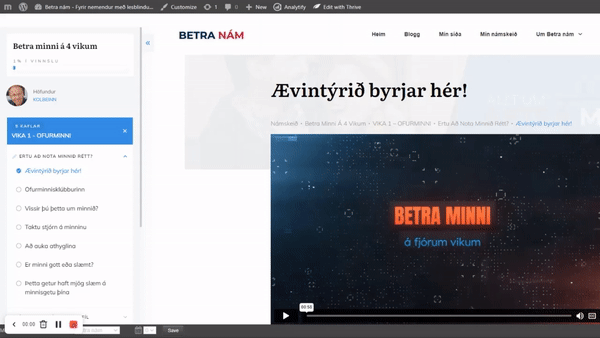 Til hamingju með fyrsta skrefið, að byrja! Það er auðvelt og þægilegt að nota námskeiðið. Ég mæli þó eindregið með því að þið farið í gefnum efni námskeiðsins í réttri röð, frá upphafi til enda.