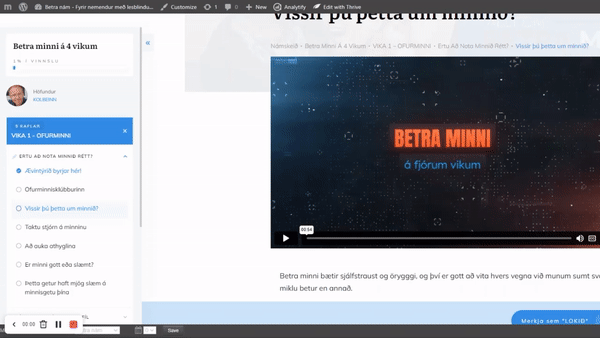 Á forsíðu námskeiðsins sérðu efnishluta námskeiðsins sem þú hefur aðgang að.